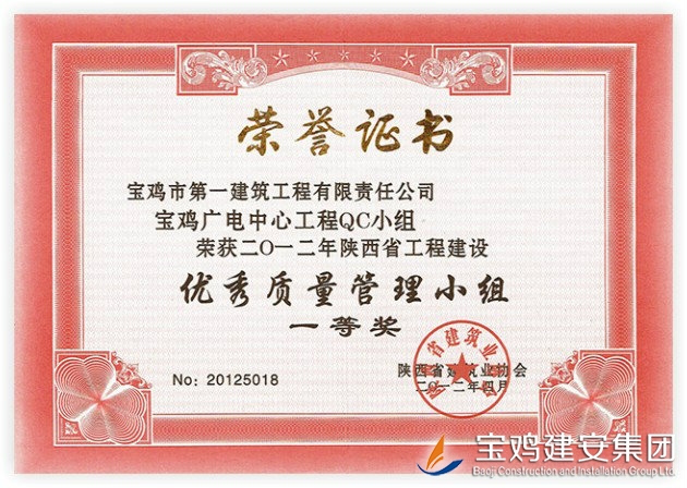 QC Team Award of Baoji Broadcasting Center Project