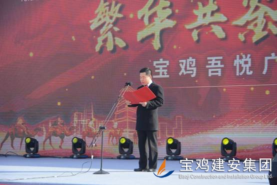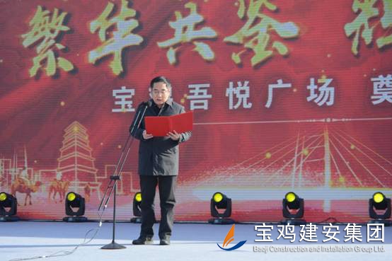 2018年1月16日上午,寶雞新城吾悅廣場項(xiàng)目奠基儀式在高新區(qū)舉行,該項(xiàng)目是繼恒大、碧桂園之后,寶雞高新區(qū)引進(jìn)的又一個(gè)千億級商業(yè)航母——新城控股集團(tuán)在西北地區(qū)建設(shè)的第二個(gè)一站式綜合廣場。奠基儀式上,公司董事長景常榮代表施工單位致辭,新城控股集團(tuán)副總裁陸建華代表建設(shè)單位致辭,高新區(qū)黨工委書記、管委會主任郝晉升代表政府單位致辭。高新區(qū)管委會領(lǐng)導(dǎo)、新城控股集團(tuán)領(lǐng)導(dǎo)、寶雞建安集團(tuán)董事長、寶雞市中小企業(yè)協(xié)會領(lǐng)導(dǎo)等為項(xiàng)目培土奠基。公司組織管理人員、施工人員共計(jì)300人參加了奠基儀式。