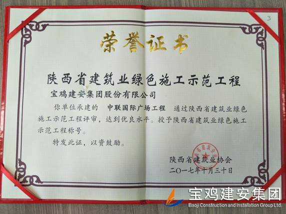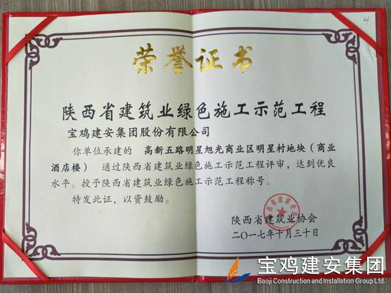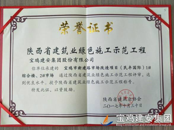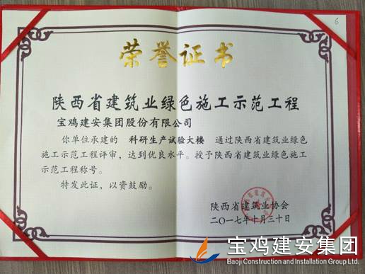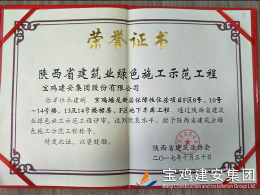 2018年1月26日在西安召開了陜西省建筑業(yè)協(xié)會第六屆二次理事會議,我公司承建的科研生產(chǎn)試驗大樓、寶雞蟠龍新居SF05標段,高新五路明星佳苑、新建路市場改造項目(民豐國際)、中聯(lián)國際廣場項目,在2017年度綠色施工評審過程中,達到優(yōu)良水平,被授予陜西省建筑業(yè)綠色施工示范工程稱號。 此次榮譽的獲得離不開公司各職能部室的指導(dǎo)與項目部的辛勤努力,項目部能緊跟建筑行業(yè)發(fā)展的大方向,不斷加強綠色施工過程管理的學(xué)習(xí),在施工過程中圍繞著“四節(jié)一環(huán)?!崩砟睿瑘猿肿吖?jié)能降耗,增效降本,可持續(xù)發(fā)展的施工道路,最終取得了可喜的成績。 公司綠色施工整體水平近年來得到顯著提高,希望各項目部在2018年的施工過程中,以文明施工,綠色施工標準嚴格要求自己,力爭在施工管理方面取得更高的成績。