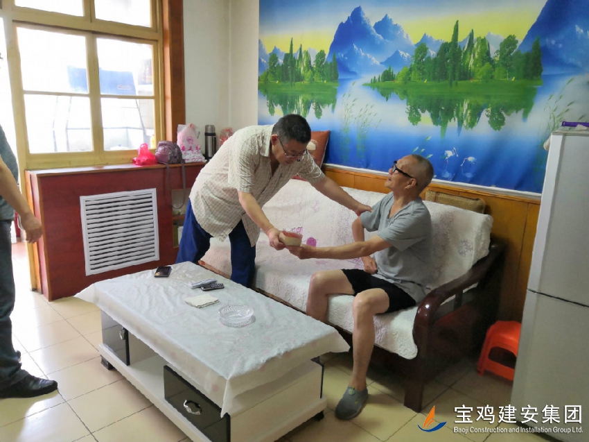 7月8日上午,公司黨委書記寧平、黨群部副部長李軍鋒代表公司黨委及市住建局黨組對退休困難黨員李虎林進行了慰問。