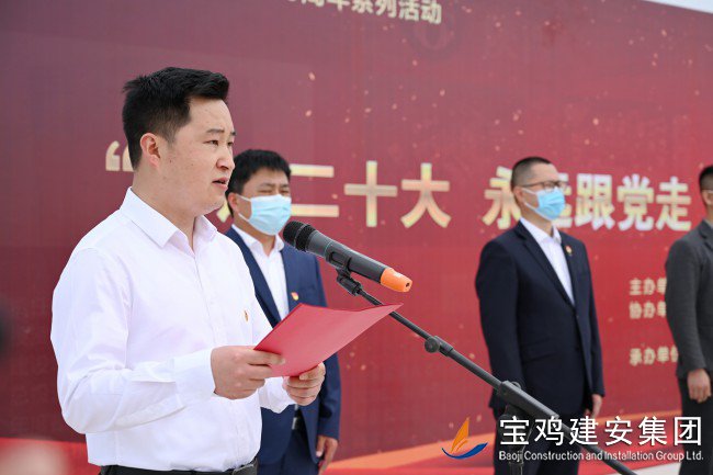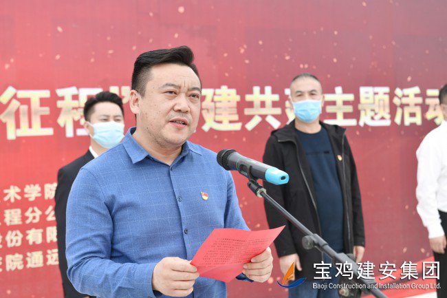 李軍鋒代表參建單位團(tuán)組織作表態(tài)發(fā)言,提出青年是時代的希望,共青團(tuán)員和廣大青年前赴后繼、勇當(dāng)先鋒,書寫了中國青年運動的華章。參建單位將以本次黨建帶動團(tuán)建為契入點,充分發(fā)揮引領(lǐng)作用,帶領(lǐng)廣大青年職工砥礪奮進(jìn),大道遠(yuǎn)行,以項目建設(shè)發(fā)展為目標(biāo),高質(zhì)量、高標(biāo)準(zhǔn)、高要求完成陜西交通職業(yè)技術(shù)學(xué)院通遠(yuǎn)校區(qū)建設(shè)任務(wù)。