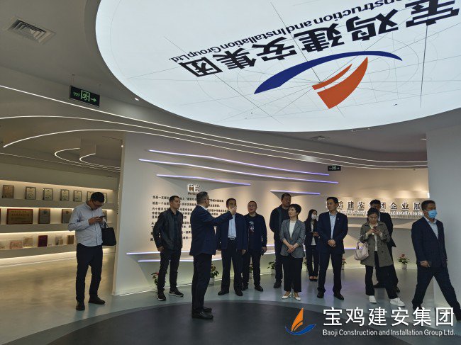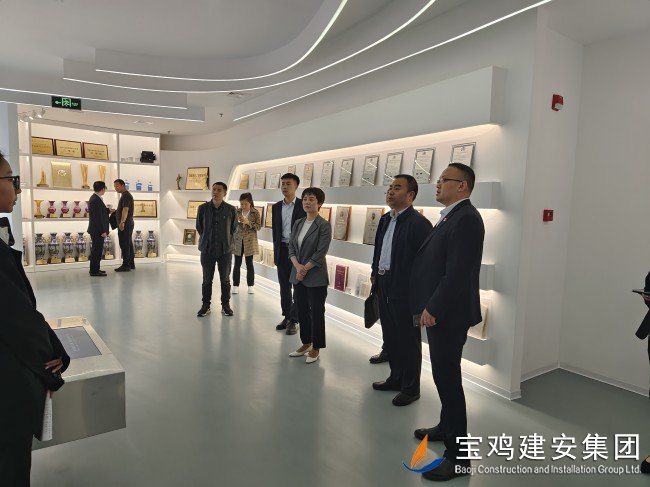 在公司總經(jīng)理胥永寧等集團(tuán)領(lǐng)導(dǎo)的陪同下,考察團(tuán)一行前往寶雞建安大廈,觀看企業(yè)宣傳片,了解集團(tuán)經(jīng)營產(chǎn)業(yè)概況。代表團(tuán)一行還參觀了公司23樓體育健身設(shè)施場館及職工文化娛樂配套項(xiàng)目;在建安大廈22樓企業(yè)展廳里,嘉賓們仔細(xì)觀看了陳列在此的企業(yè)榮譽(yù)成績、代表性工程及歷史實(shí)物,在胥總和展廳講解員的引導(dǎo)和解說下,代表團(tuán)一行全面了解了寶雞建安集團(tuán)六十年輝煌歷史,以及集團(tuán)在推動寶雞城建事業(yè)中所做出的卓越貢獻(xiàn)和重要地位。
