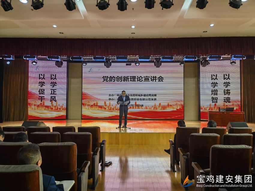 為認真學(xué)習(xí)貫徹習(xí)近平新時代中國特色社會主義思想和黨的二十大精神,扎實深入推進主題教育。11月28日下午,在寶雞建安集團股份有限公司24樓多功能廳舉辦了一場“學(xué)習(xí)貫徹講話精神、著力推動高質(zhì)量發(fā)展”黨的創(chuàng)新理論宣講會。本次宣講會由中共寶雞市住房和城鄉(xiāng)建設(shè)局黨組主辦,寶雞建安集團股份有限公司黨委承辦,局機關(guān)和局屬27個企事業(yè)單位200多名黨員干部參加了宣講會。 寶雞建安集團公司黨委副書記胥永寧在致詞中,感謝局黨組對寶雞建安集團公司的信任和大力支持,介紹了公司經(jīng)營生產(chǎn)情況和黨建工作開展情況,并邀請局系統(tǒng)各兄弟單位蒞臨指導(dǎo),加強學(xué)習(xí)交流,共同拓展工作思路,促進各項工作更上一層樓。