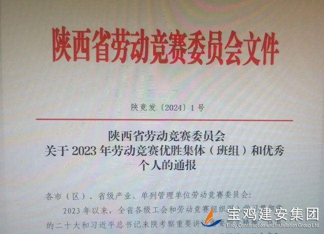 十一分公司南關(guān)路城市綜合體項(xiàng)目部榮獲“2023年度陜西省勞動(dòng)競(jìng)賽優(yōu)勝班組”稱號(hào)
