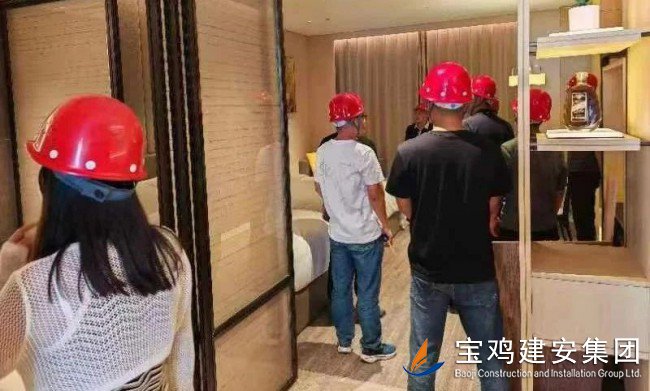來訪人員首先闡明了此行的目的和意義,我單位相關(guān)管理人員針對隴縣海棠酒店項目特征、在建情況、建成后主要建筑功能,向各位嘉賓進行了詳細介紹。隨后在安裝一公司現(xiàn)場管理人員陪同下,對隴縣海棠酒店已成型樣板間,廚房、大堂及地下車庫等工程重點建設(shè)部位進行實地參觀考察。我公司管理人員對西建集團、陜西省建筑設(shè)計院同仁提出的專業(yè)問題給予了耐心解答,在輕松友好的氣氛中,嘉賓對我公司施工項目質(zhì)量及企業(yè)綜合實力表達了高度認(rèn)可與肯定。